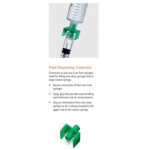 Fluid dispensing connectors are designed for secure and sterile transfer of fluids in medical and dental environments, ensuring precision and safety.