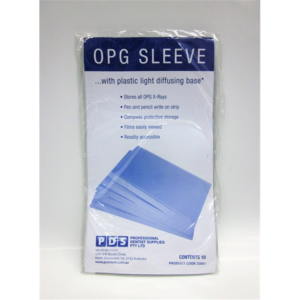 Plastic dental OPG sleeves with a light diffusing base. Ideal for storage and viewing OPG films. White strip can be written on and hole punched for easy filing.