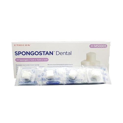 SPONGOSTAN Dental is a sterile, absorbable gelatin sponge specifically designed for dental and oral surgical procedures. It aids in controlling bleeding and supports clot formation at extraction sites or surgical wounds. Fully absorbable and biocompatible, it eliminates the need for removal.