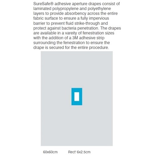 DRAPE SURESAFE 60X60CM 6X2.5CM ADHESIVE APERTURE STERILE 200