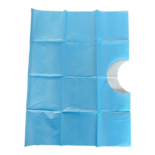 Absorbent sterile drape with a circular fenestration, designed for catheterisation and minor procedures. Features a 3-ply cotton top layer and waterproof plastic backing for fluid control and patient comfort.