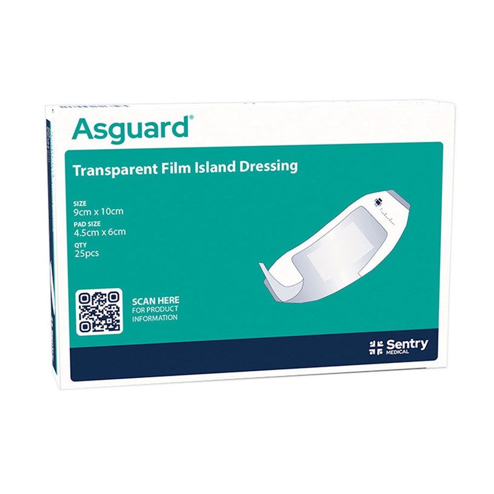 Asguard® Transparent Film Island Dressings combine a breathable absorbent pad with a waterproof outer layer. Designed for minor wounds and post-operative care, they allow showering while in place and reduce dressing changes.