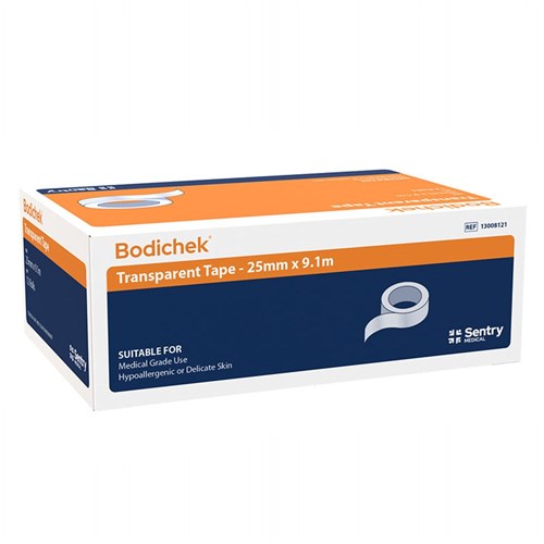 Bodichek transparent tape provides strong, reliable adhesion for securing dressings and medical devices. Its clear design allows easy skin visibility, making it ideal for clinical and first aid applications.