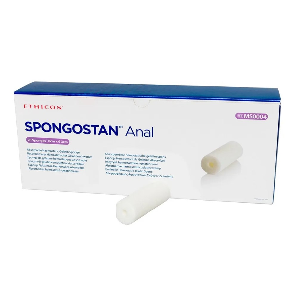 SPONGOSTAN Anal is an absorbable gelatin sponge designed to assist in achieving hemostasis during surgical procedures. It provides rapid control of bleeding by promoting clot formation and conforms easily to anatomical structures. The sponge is sterile, biocompatible, and fully absorbable, making it ideal for use in anorectal surgeries.