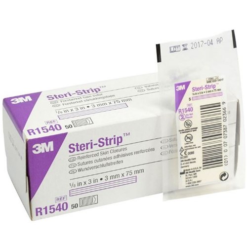 The 3M Steristrip adhesive skin closure offers a gentle, effective method for closing small wounds and surgical incisions. Its reinforced design provides strength while minimizing tissue trauma and scarring.