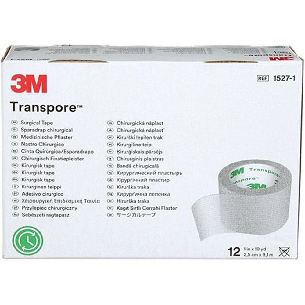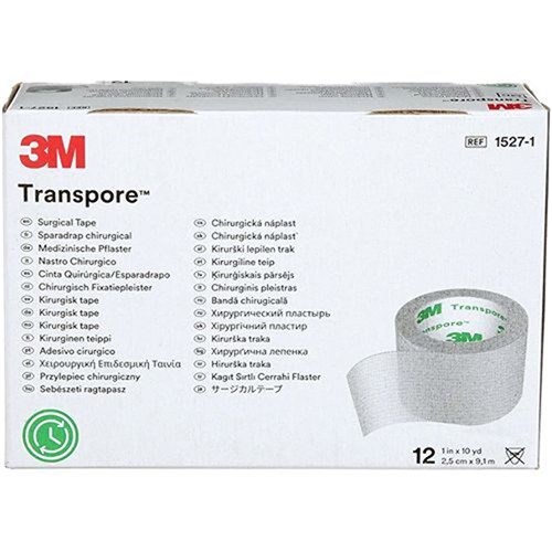 The 3M Transpore surgical tape offers reliable adhesion and easy handling for securing dressings and devices. Its transparent, perforated design allows quick application and monitoring of the underlying skin.