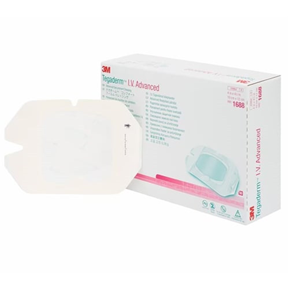 The 3M Tegaderm transparent IV dressing offers a large coverage area for secure catheter fixation and site protection. Its waterproof, breathable film maintains a sterile barrier while allowing continuous site observation.