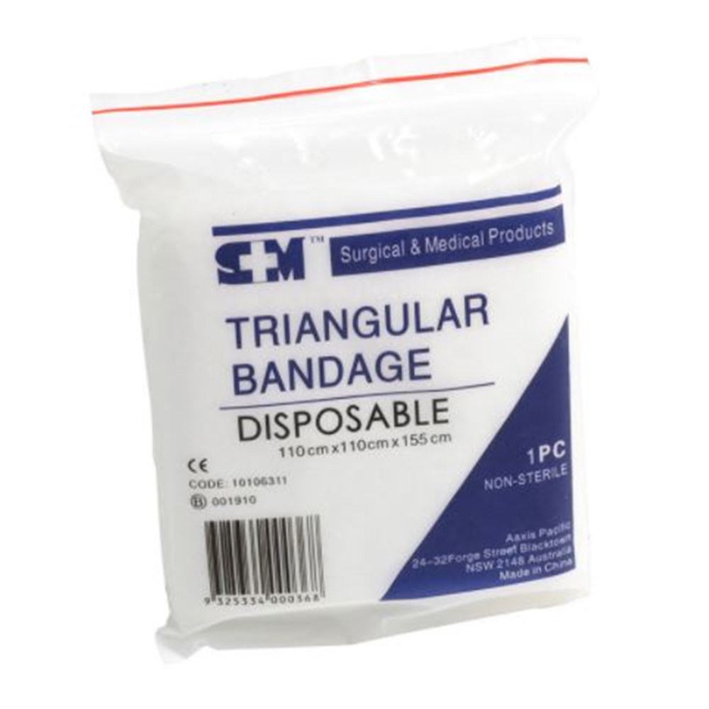 Pack Contents: 1 x Disposable Triangular Bandage (110 x 155cm)