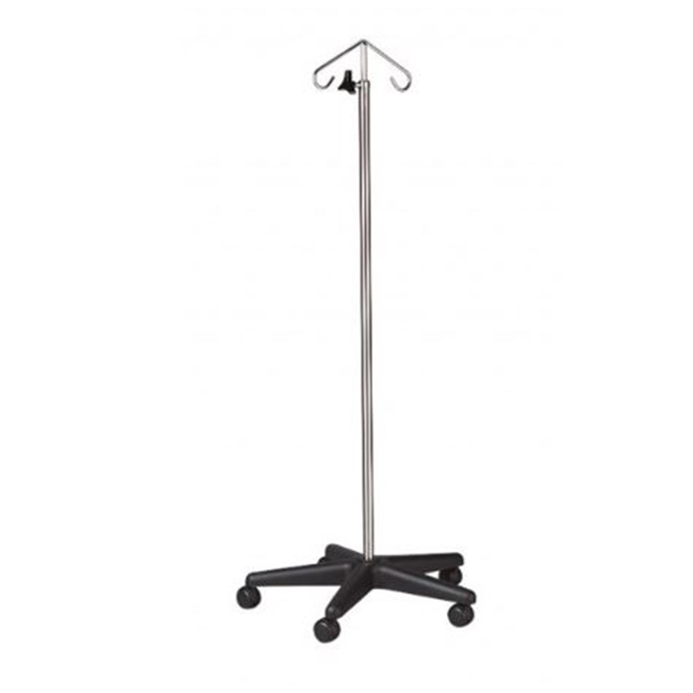 IV Drip Stand - Medium Weight - Mobile - 2 Hook - Plastic Base - Single