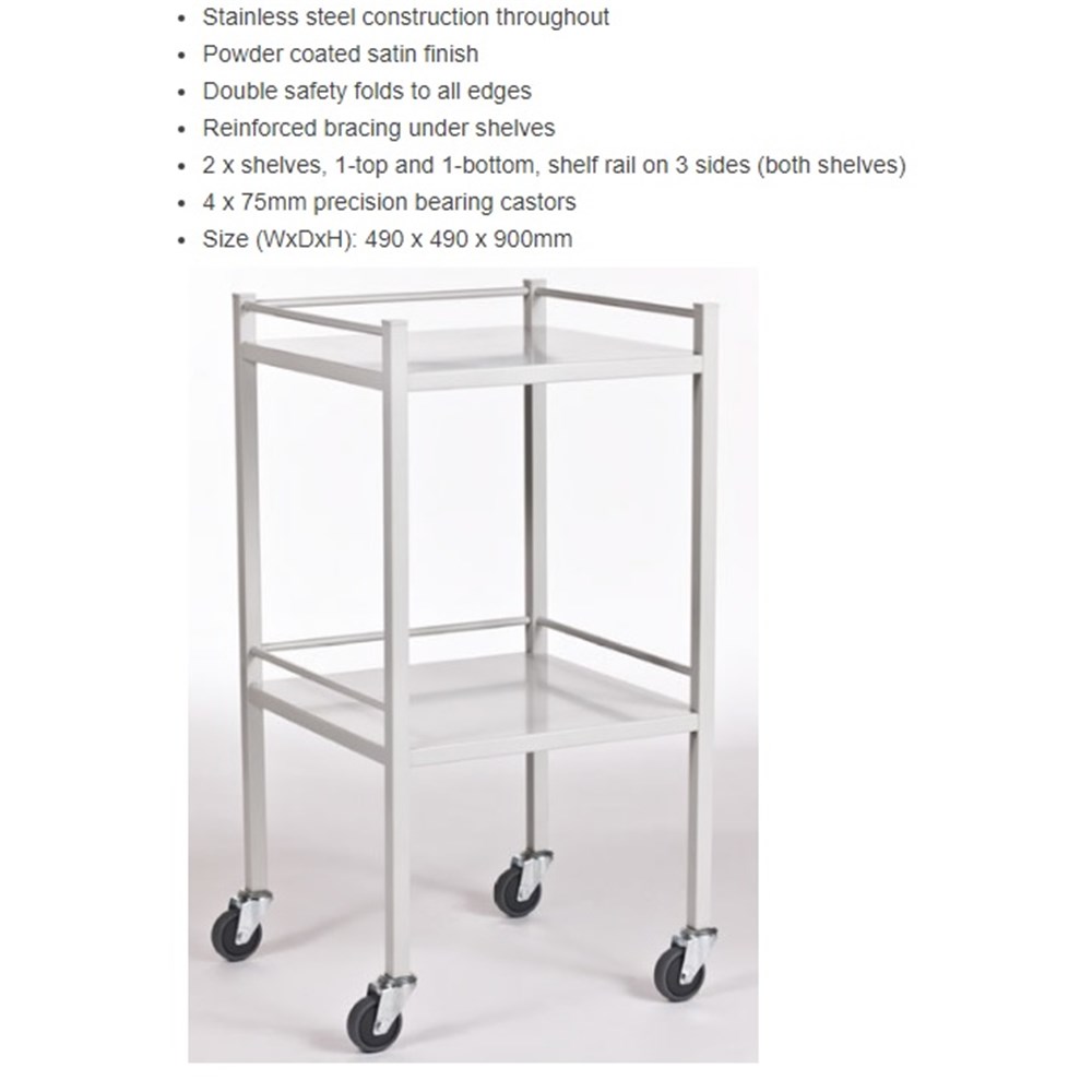 Instrument Trolley - With Rail - Epoxy Coated - 490 x 490 x 900mm - Single