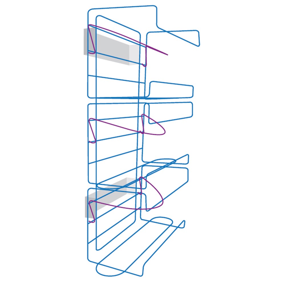 A durable triple glove dispenser designed for efficient storage and easy access to glove boxes in clinical environments. The integrated springback mechanism ensures each glove box remains securely positioned for smooth dispensing.