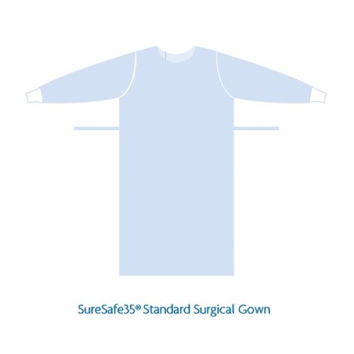 The SureSafe SS35 sterile surgical gown is designed for operating theatre use, providing reliable protection and comfort. Made from 35gsm SMS material, it offers fluid resistance and breathability. Each gown includes two sterile paper towels for surgical preparation.