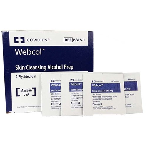 Webcol alcohol swabs are saturated with 70% isopropyl alcohol and designed for effective skin antisepsis prior to injection or minor procedures. Their thick, non-woven pads ensure thorough cleansing and patient safety.