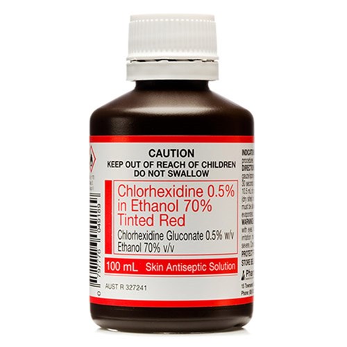 Chlorhexidine 0.5% in 70% Ethanol - 100ml - Tinted Red