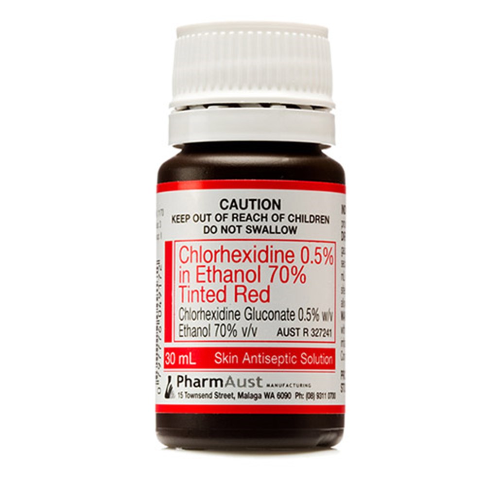 Chlorhexidine 0.5% in 70% Ethanol - 30ml - Tinted Red