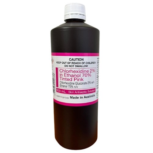 Chlorhexidine 2% in 70% Ethanol - 500ml - Tinted Pink