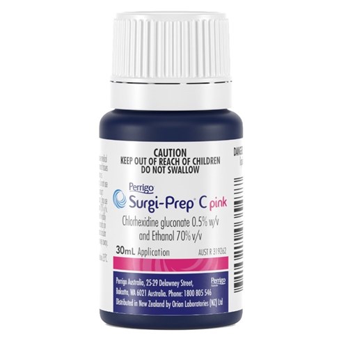 Surgi-Prep C Pink - 0.5% Chlorhexidine - 70% Alcohol - Skin Asepsis - 30ml Bottle - Single
