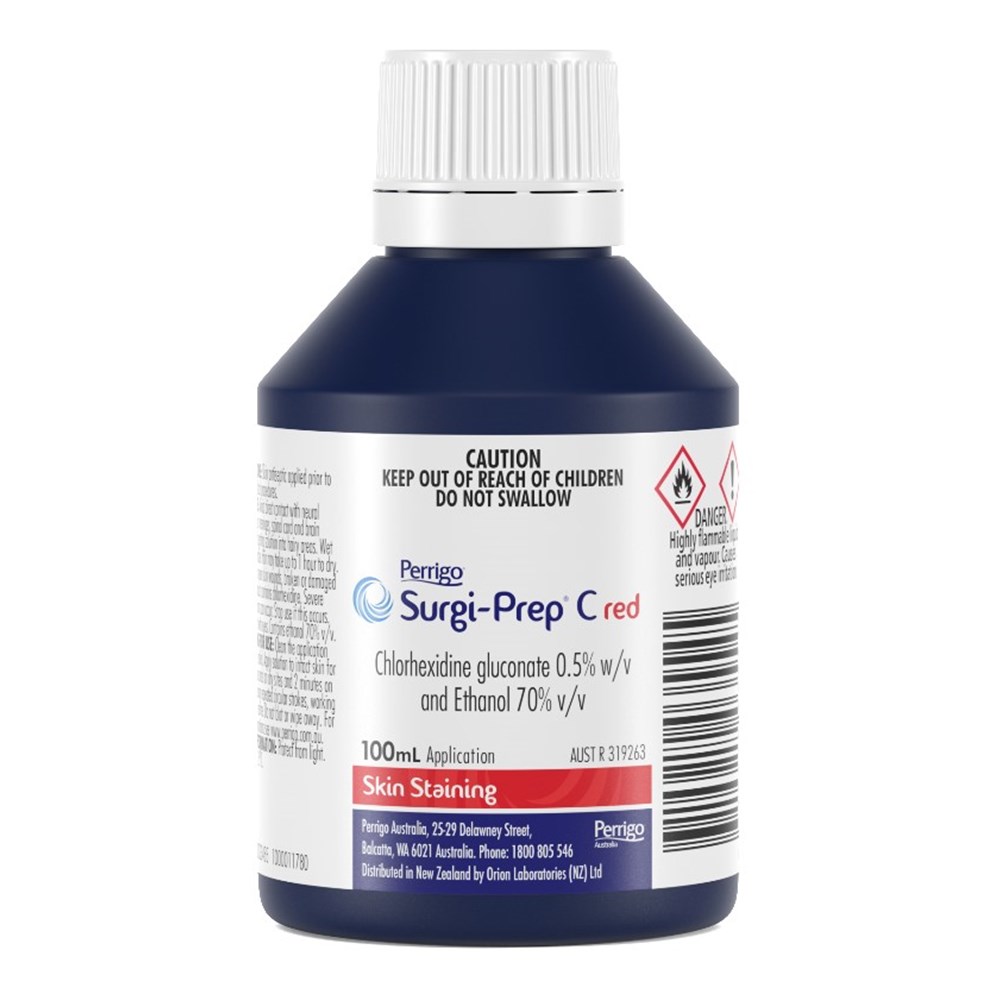 Surgi-Prep C Red - 0.5% Chlorhexidine - 70% Alcohol - 100ml Bottle - Single