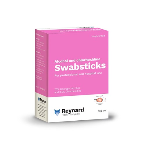 These large tinted swabsticks are designed for effective skin antisepsis with visual confirmation of application. They contain 0.5% Chlorhexidine and 70% Alcohol for reliable antimicrobial protection.