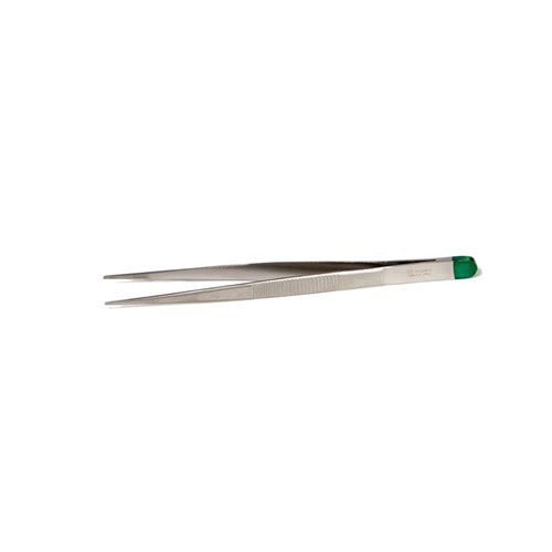 Single-use pointed dressing forceps designed for precision handling of dressings and materials during wound care and minor procedures. Manufactured from stainless steel with a green-dipped handle for easy identification as disposable.