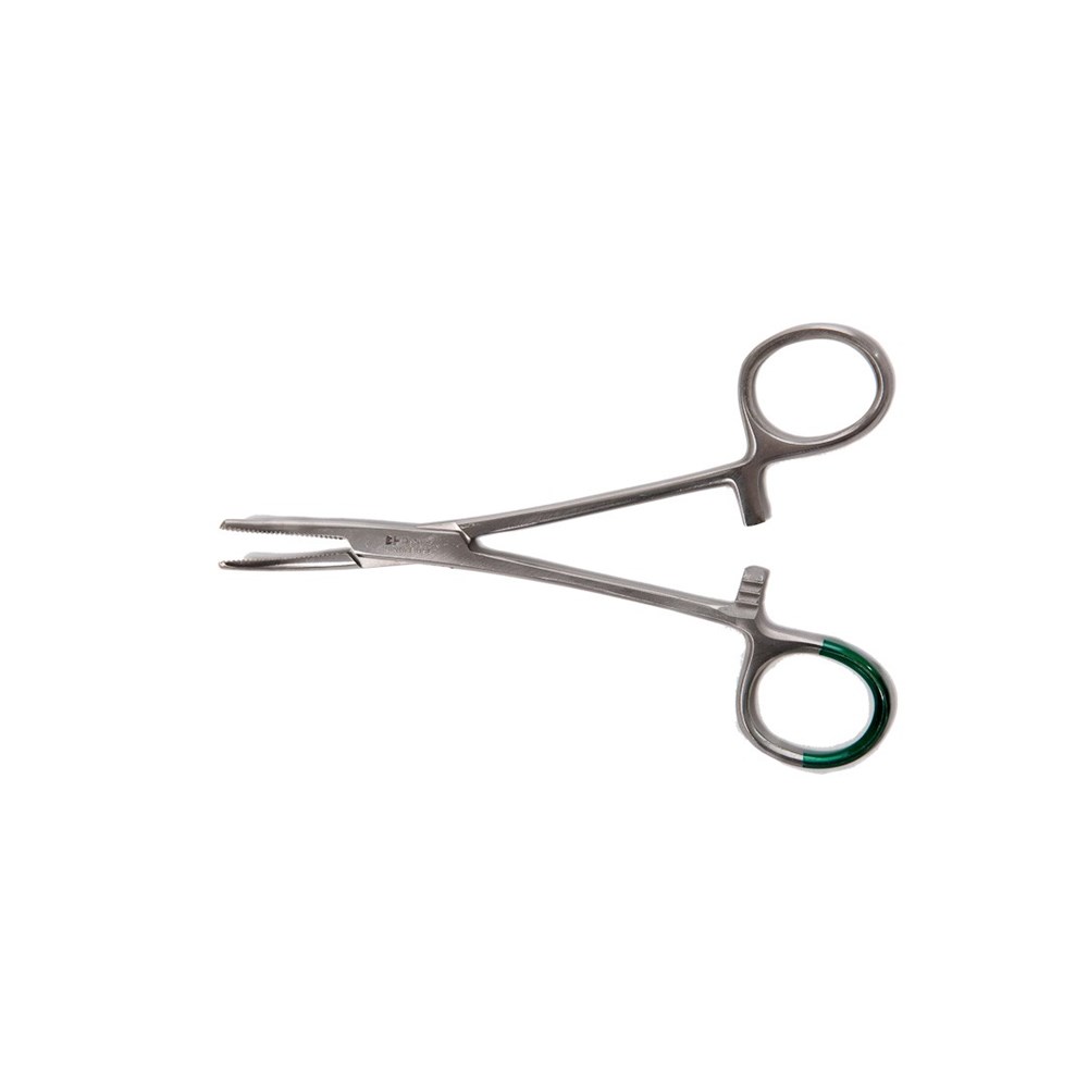 Bulk pack of single-use curved Spencer Wells forceps for surgical procedures. Designed for vessel clamping and tissue manipulation. Made from stainless steel with green-dipped handles for easy identification.