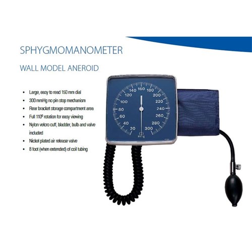 Sphygmomanometer - Wall Mounted - Aneroid - 6" Dial - Latex-Free - Single