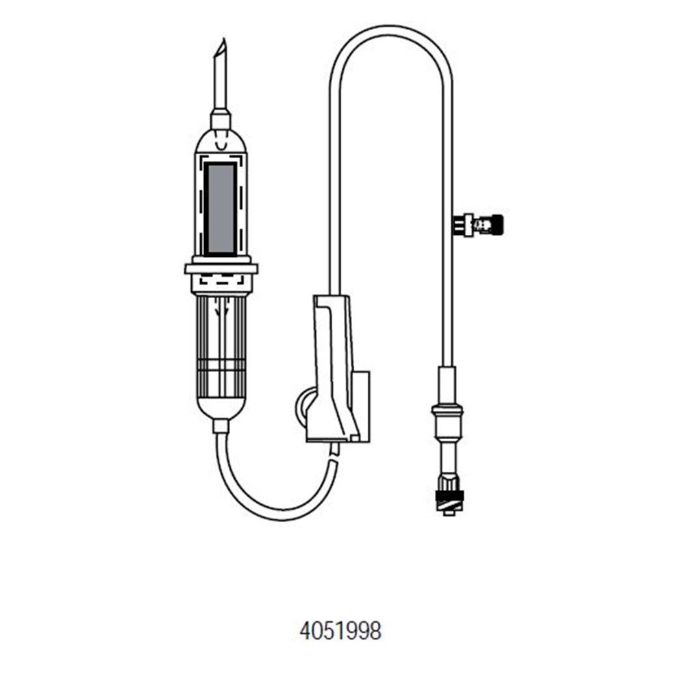 A sterile IV giving set with integrated needle-free access valve, designed for safe and efficient fluid administration.