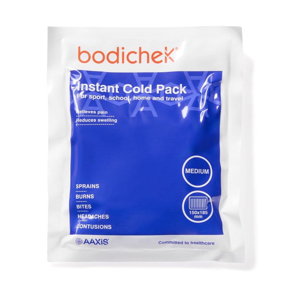 The Bodichek Instant Cold Pack provides immediate cooling relief for pain and swelling. Designed for single-use, it activates instantly with a simple strike and shake, making it ideal for first aid and sports injuries.