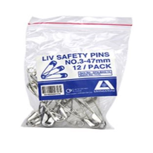 Safety Pins - Chrome - Size 3 - 47mm - Pack of 12