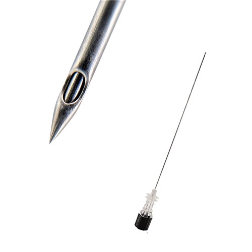 This spinal needle is designed for atraumatic lumbar puncture and spinal anesthesia. Its pencil point tip minimizes tissue trauma and reduces the risk of post-dural puncture headache.