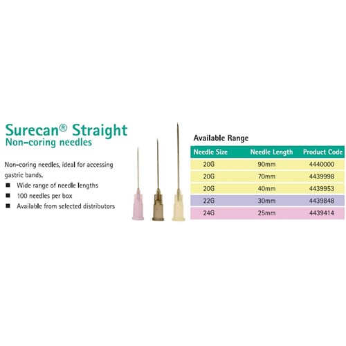 SURECAN NON CORING HUBER NEEDLE 22G X 30MM 100