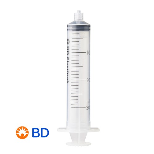The BD 30ml Luer Lock Syringe is engineered for secure, high-volume fluid delivery. Its locking tip ensures a tight, leak-resistant connection with compatible devices, making it ideal for clinical and procedural use.