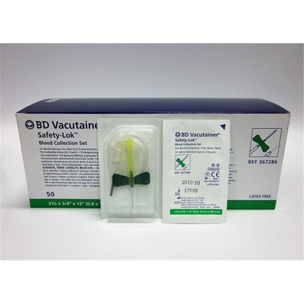 BD Vacutainer Winged Set – Safety-Lok – 21G x 0.75" – Luer – 50-Pack