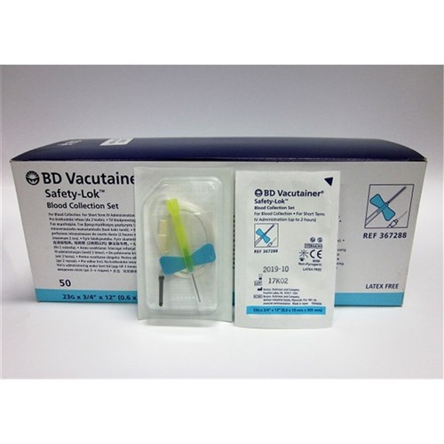 BD Vacutainer Winged Set – Safety-Lok – 23G x 19mm – 30cm Tubing – Luer – 50-Pack