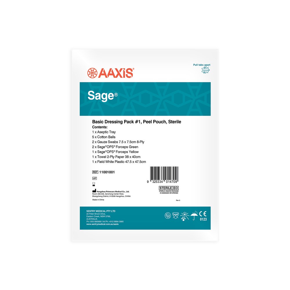Sage® Basic Dressing Pack No.1 provides a sterile, all-in-one solution for wound care and general medical procedures. Designed for aseptic technique, it includes essential components for efficient dressing changes.