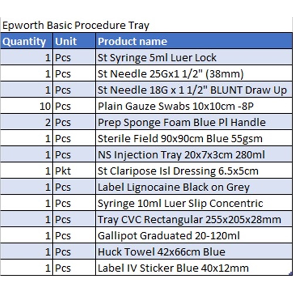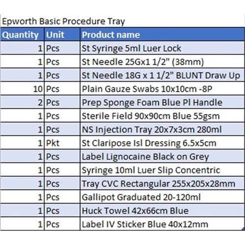 Multigate Epworth Sterile Procedure Tray
