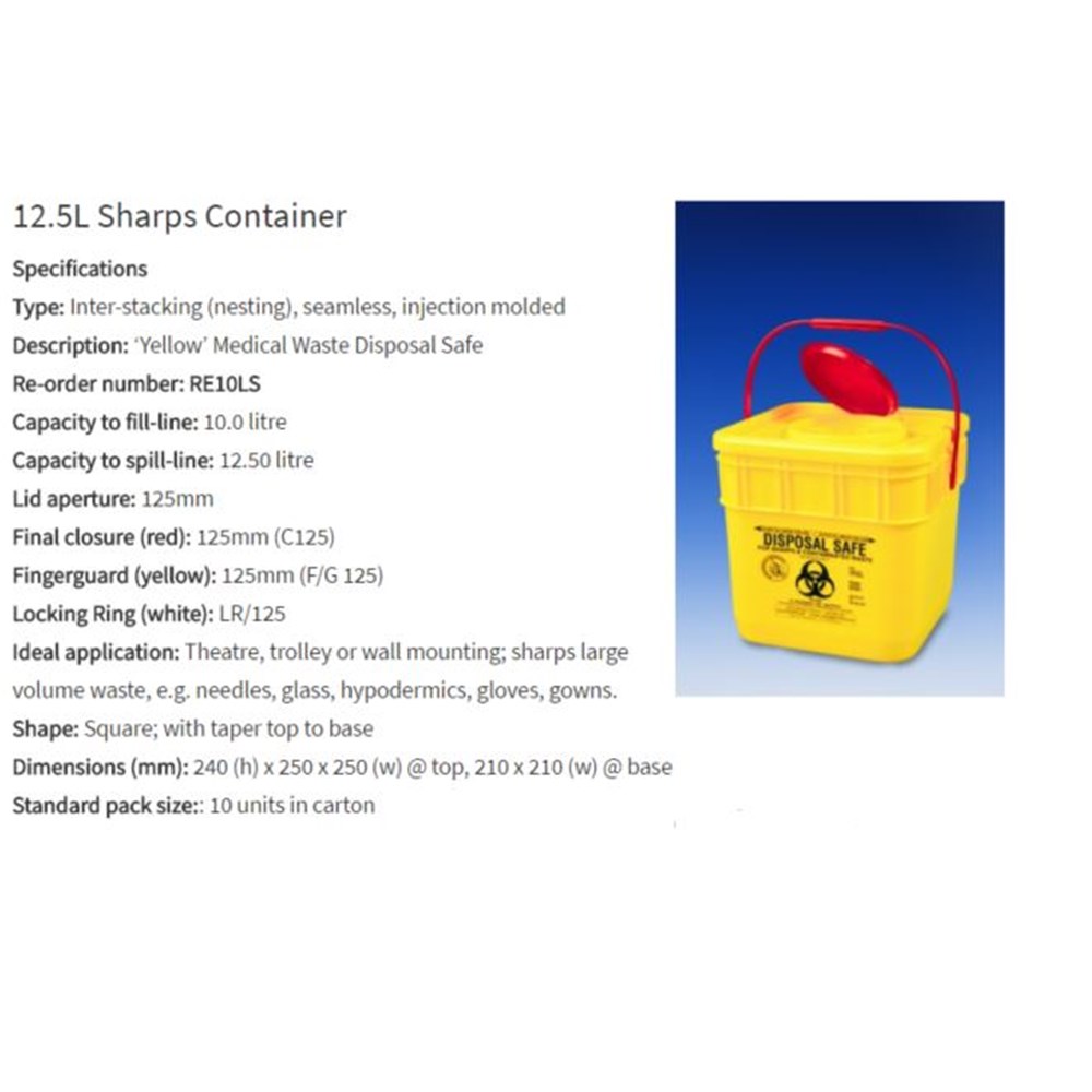 Sharps Collector - 10L - Yellow - Square - RE10LS - Single