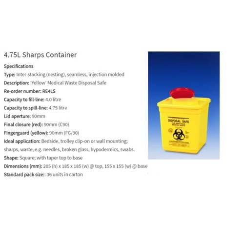 Sharps Collector - 4L - Yellow - Square - Single
