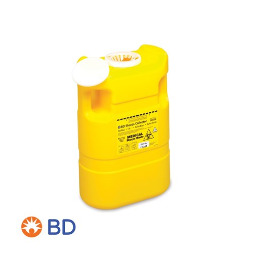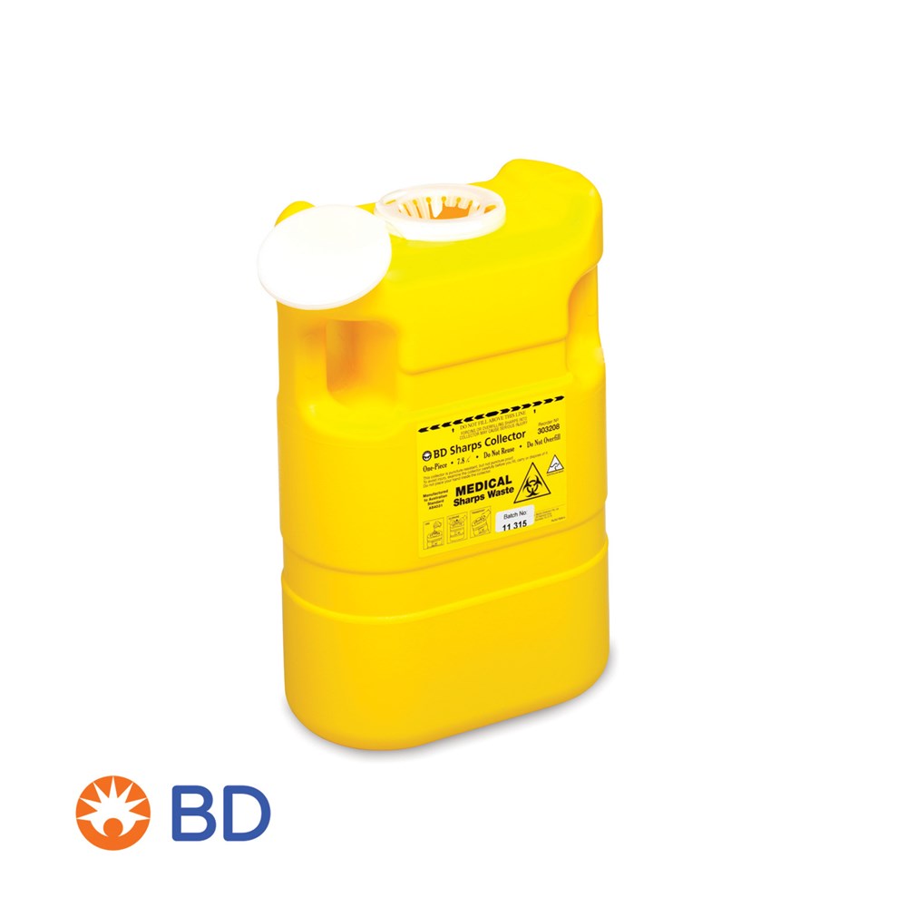 The BD Sharps Collector Large 8L is designed for safe and efficient disposal of sharps and medical waste. It features a secure locking mechanism and is made from durable materials to ensure safety and compliance with medical waste disposal regulations.