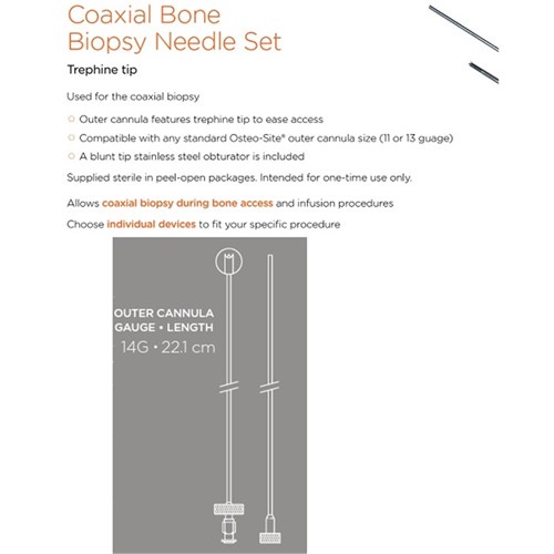 Osteo-Site Coaxial Bone Biopsy Needle - 14G x 22.1cm - Long - Single