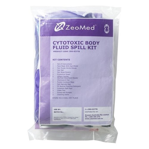 The ZeoMed Cytotoxic Body Fluid Spill Kit is designed to protect healthcare workers and staff from exposure to hazardous body fluids, particularly from patients undergoing chemotherapy. This comprehensive kit includes everything needed to safely manage and clean up cytotoxic spills in compliance with workplace safety standards.