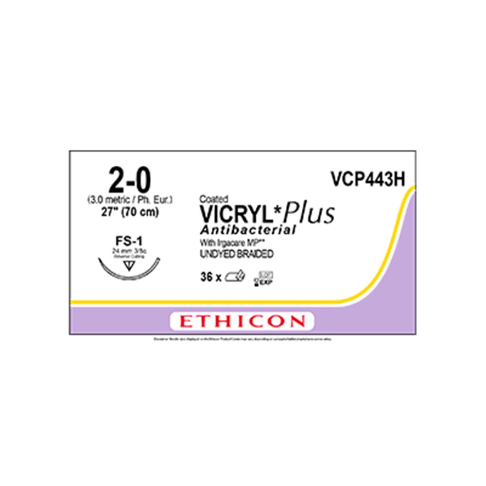 Ethicon Coated Vicryl Antibacterial Sutures - 70cm - 2-0 - FS-1 - 24mm - Pack of 36
