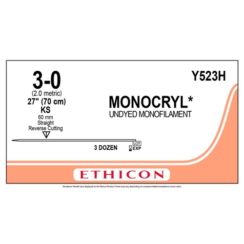 Pack Contents: 36 x Sutures (3-0 MONOCRYL UNDYED 1X27" KS)
