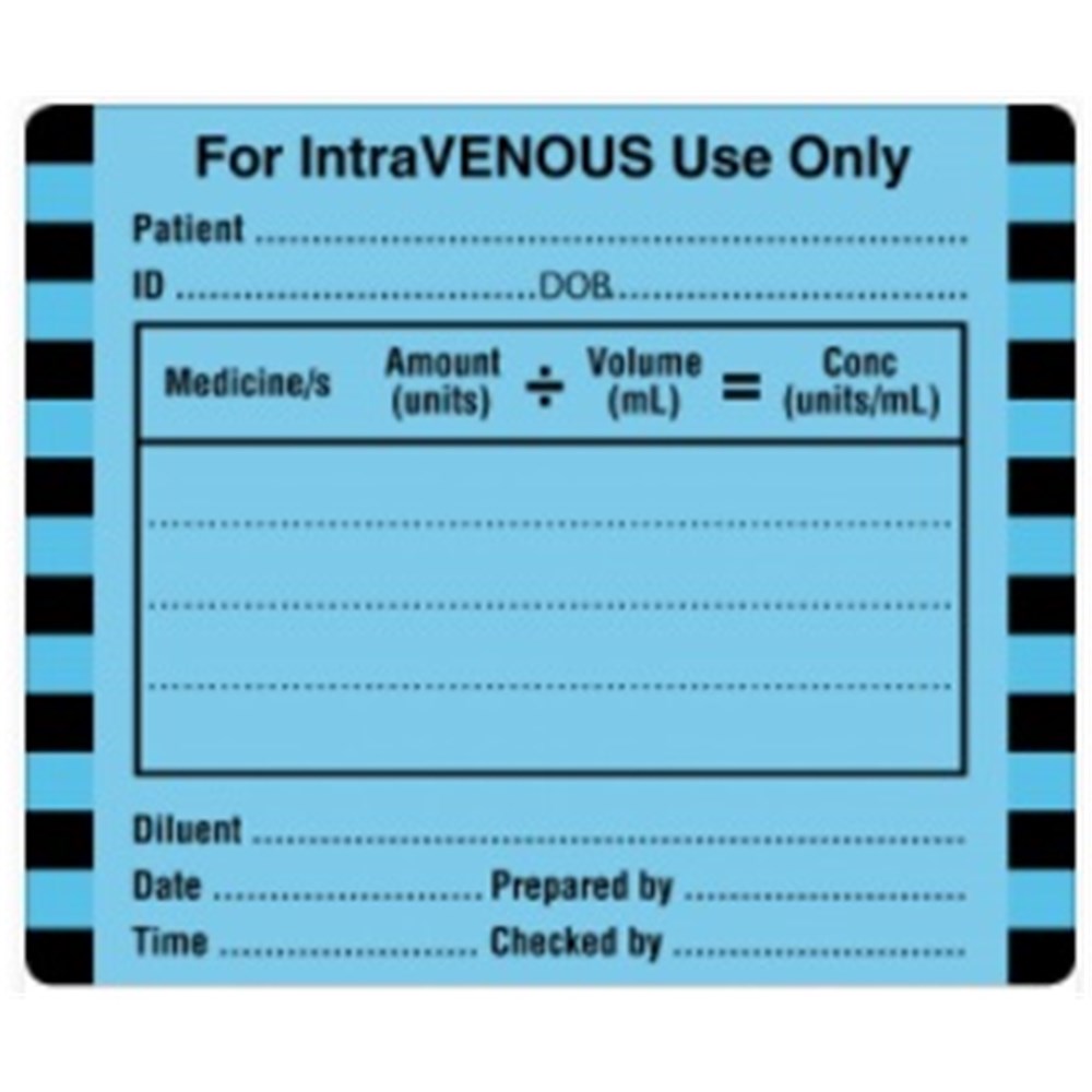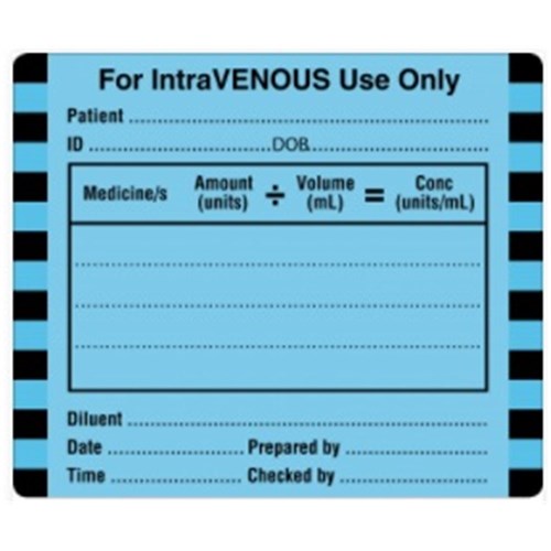 X-Ray Label - "For Intravenous Use Only" - 6x5cm - Blue - Pack of 250