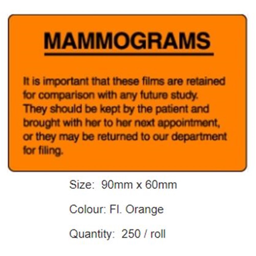 X-Ray Label - Orange - "Mammograms" - Pack of 250
